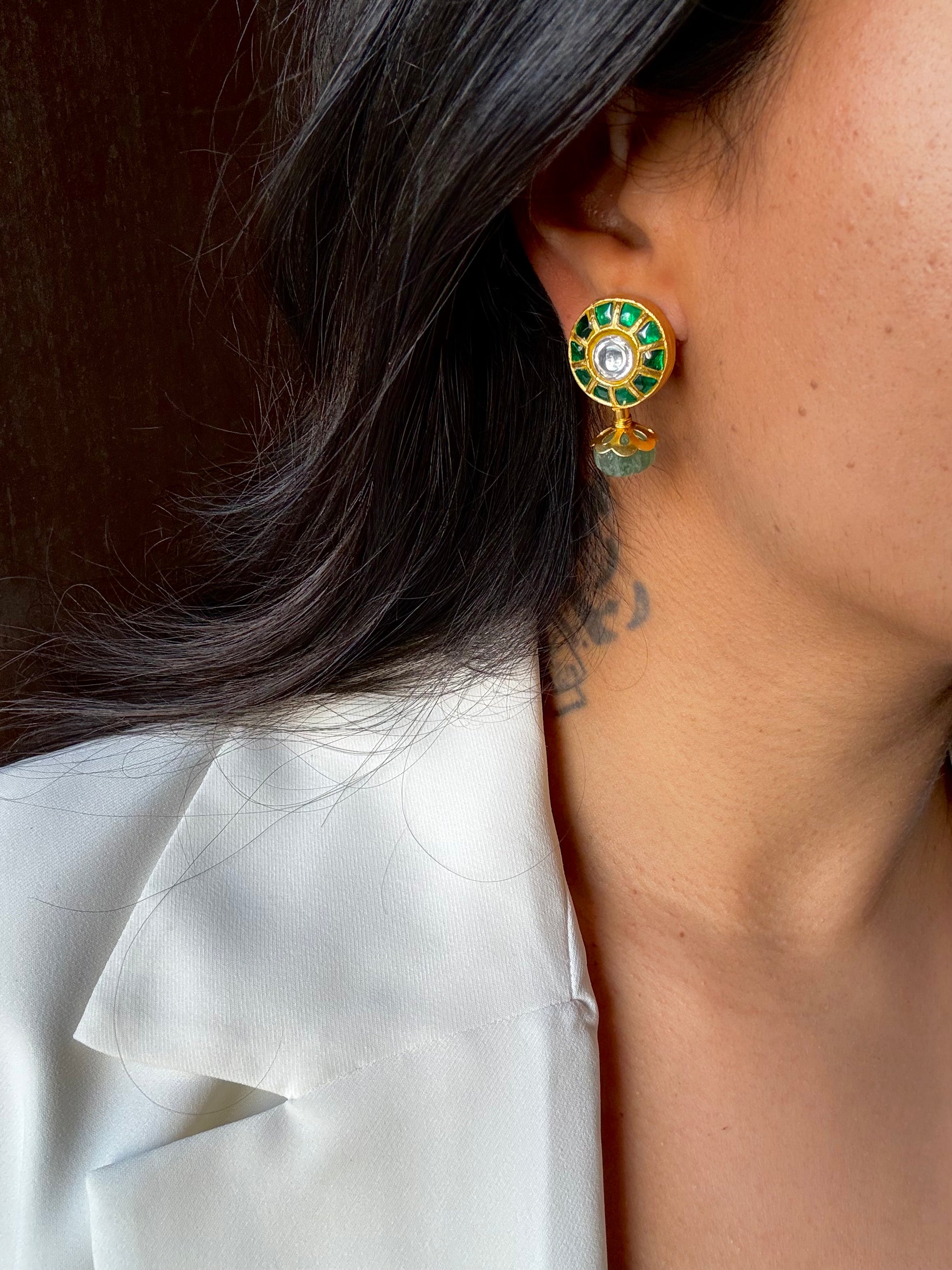 A subtle statement to elevate your everyday Indian wear with Meenakari & sea emerald stone.