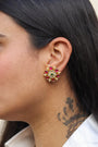Flower shaped Kundan studs on coloured stones.