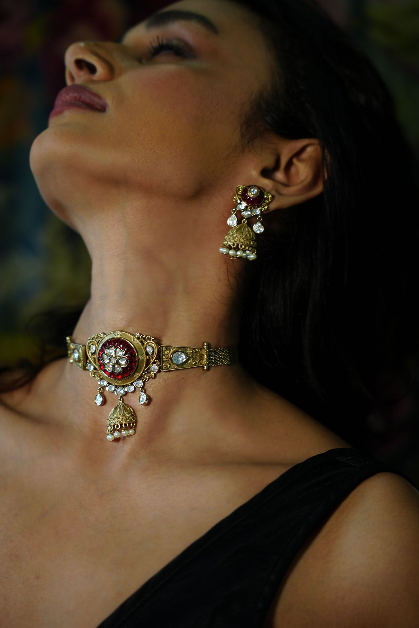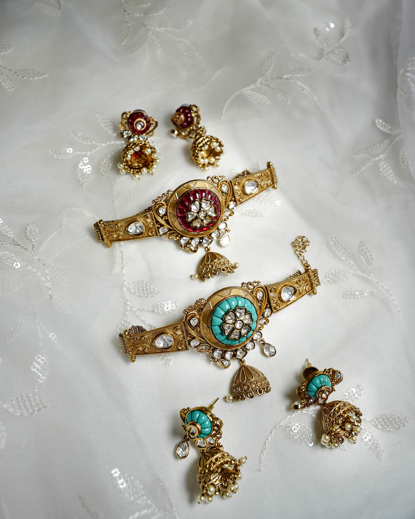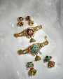 Our crown jewel and a celebration of pairing, heritage, and shared beauty. Each piece is adorned with kundan and embossed motifs, Crafted in a luxe antique gold-tone finish, finished with hanging charms. Great gifting option for that feeling of a complete, versatile option - These pair beautifully with festive lehengas, silks, or even layered over a simple kurta to instantly elevate the look. Ideal for wedding gifting & rakhi sets.