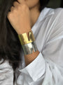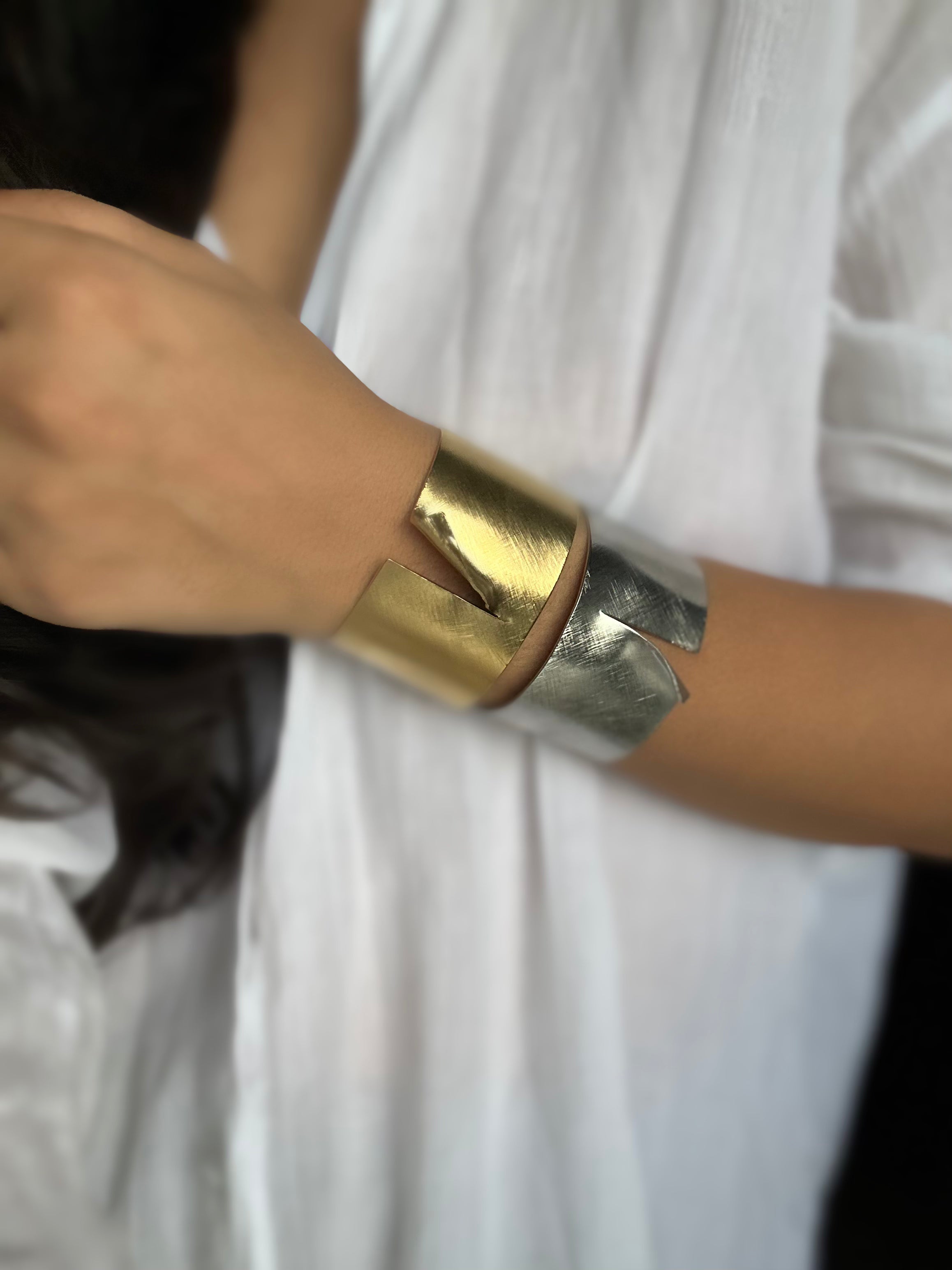 Wrist cuffs on brass metal, with torned page design. Comes in Gold & Silver color adding a statement look to your everyday style.
