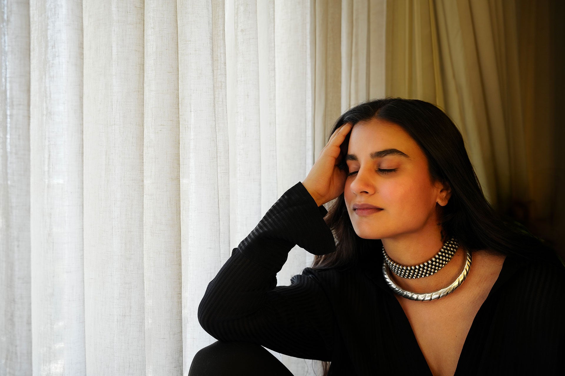 This engraved choker is hand-moulded in a silver-tone alloy and finished with intricate etching that mimics tribal patterns passed down through generations - Perfect with cotton sarees, oversized kaftans, or layered over a crisp collared shirt. For a bolder look, stack it with other metal textures.