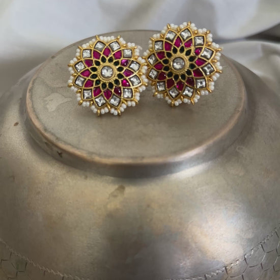 Flower shaped pearl & Jadau studs. A perfect size for them to make a statement & dress your lfestive & wedding looks.