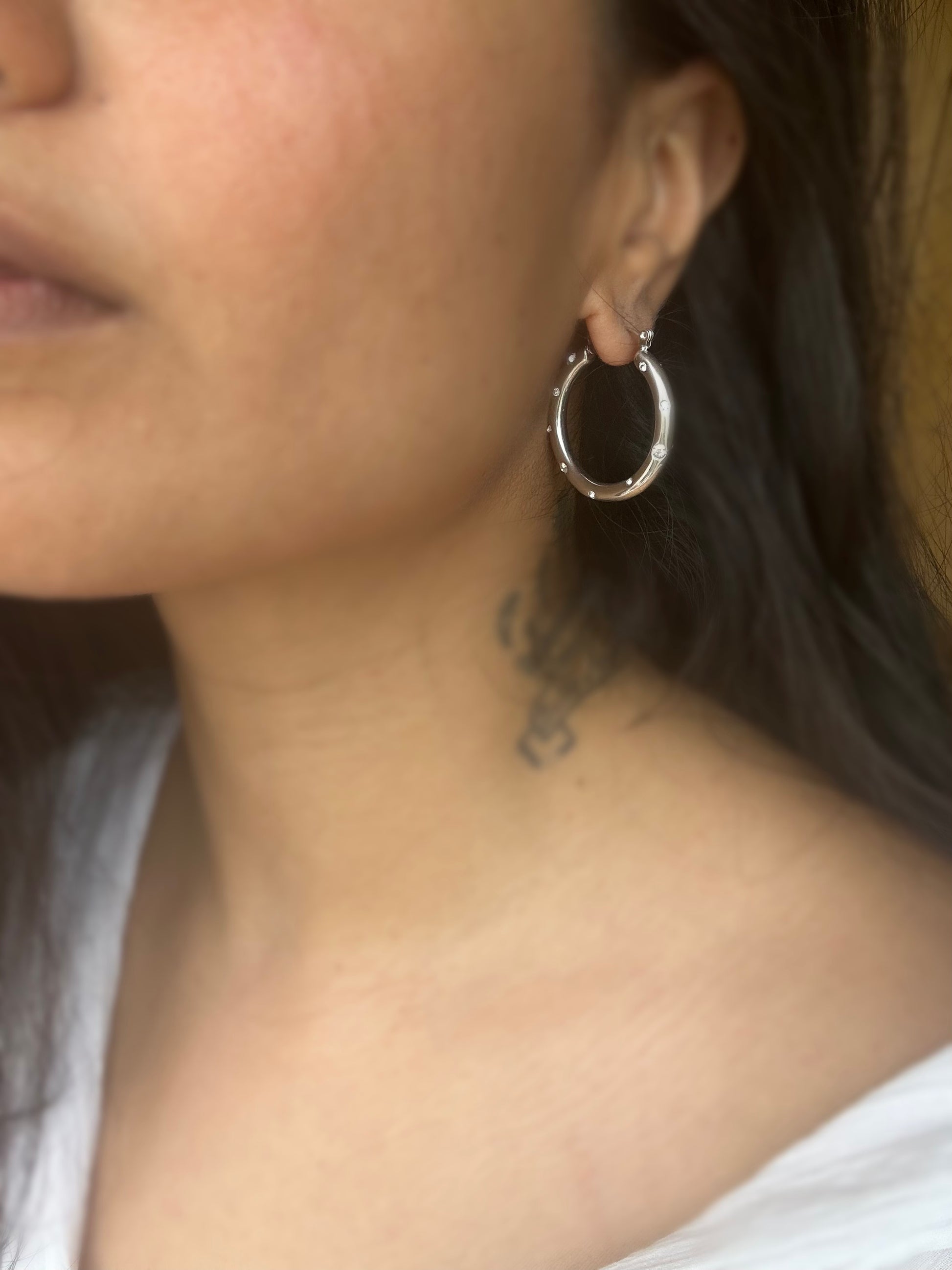 Platinum polish silver hoops with Multi Coloured & White Zircon options