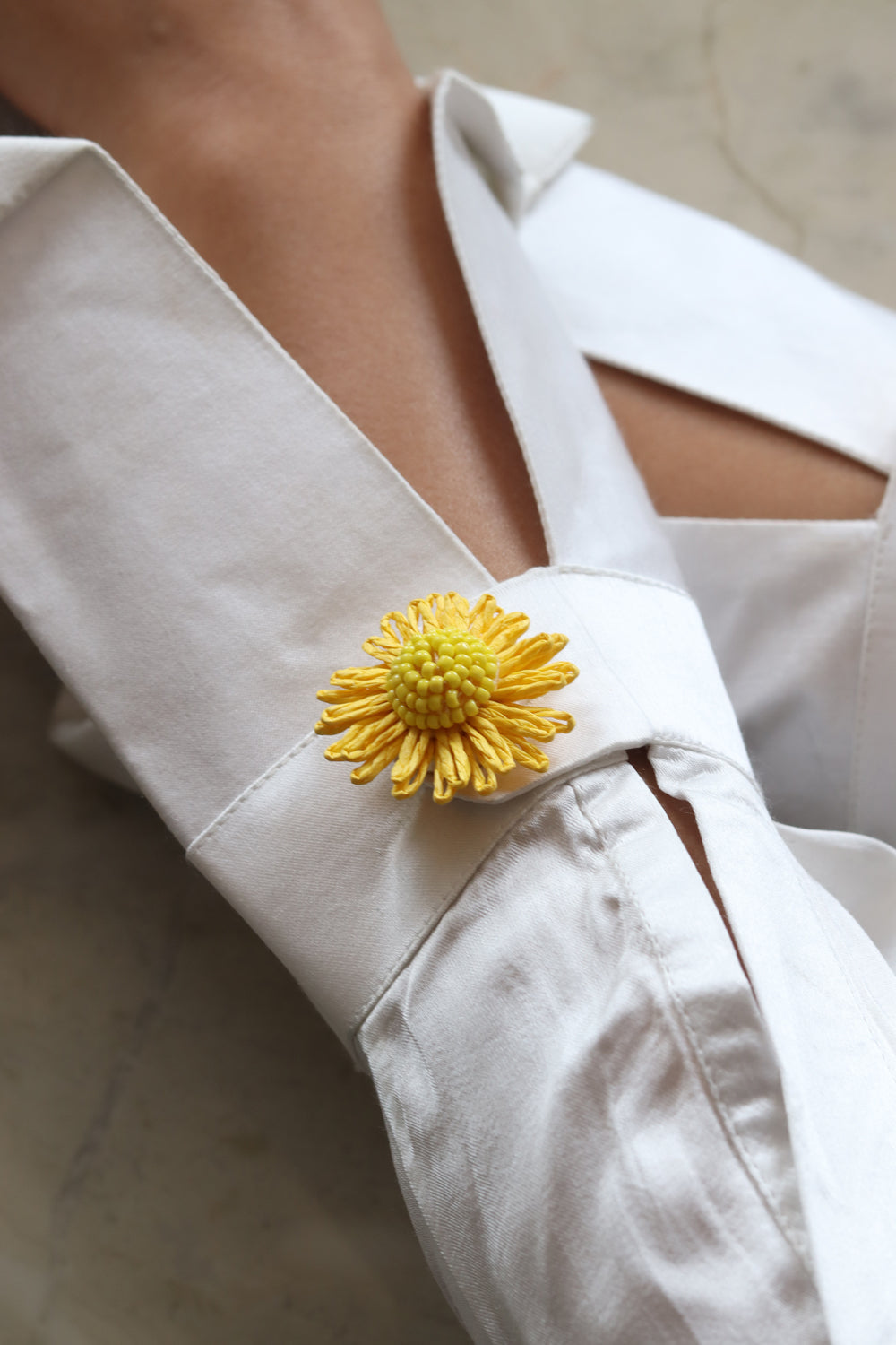 Layered petals in a rich sunshine yellow finish, built into a bold, sunlit form. Textural, striking, and designed to stand out from a distance.