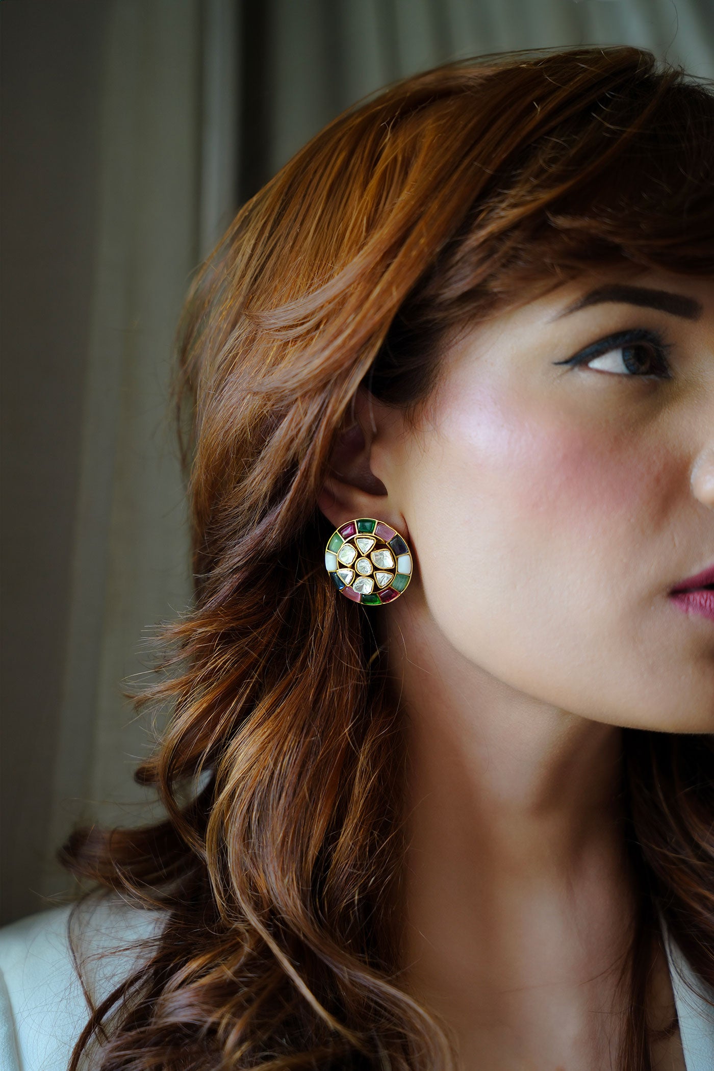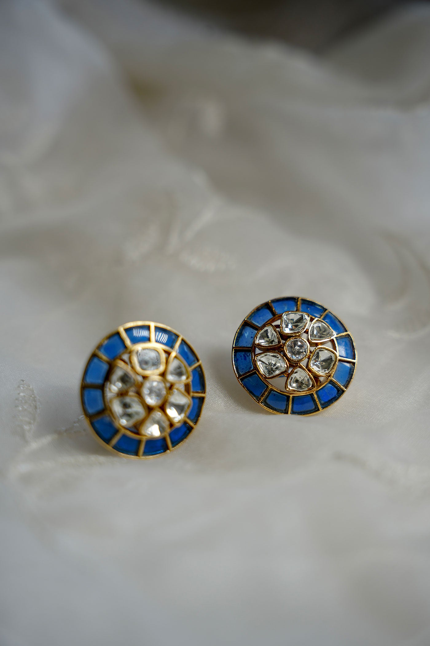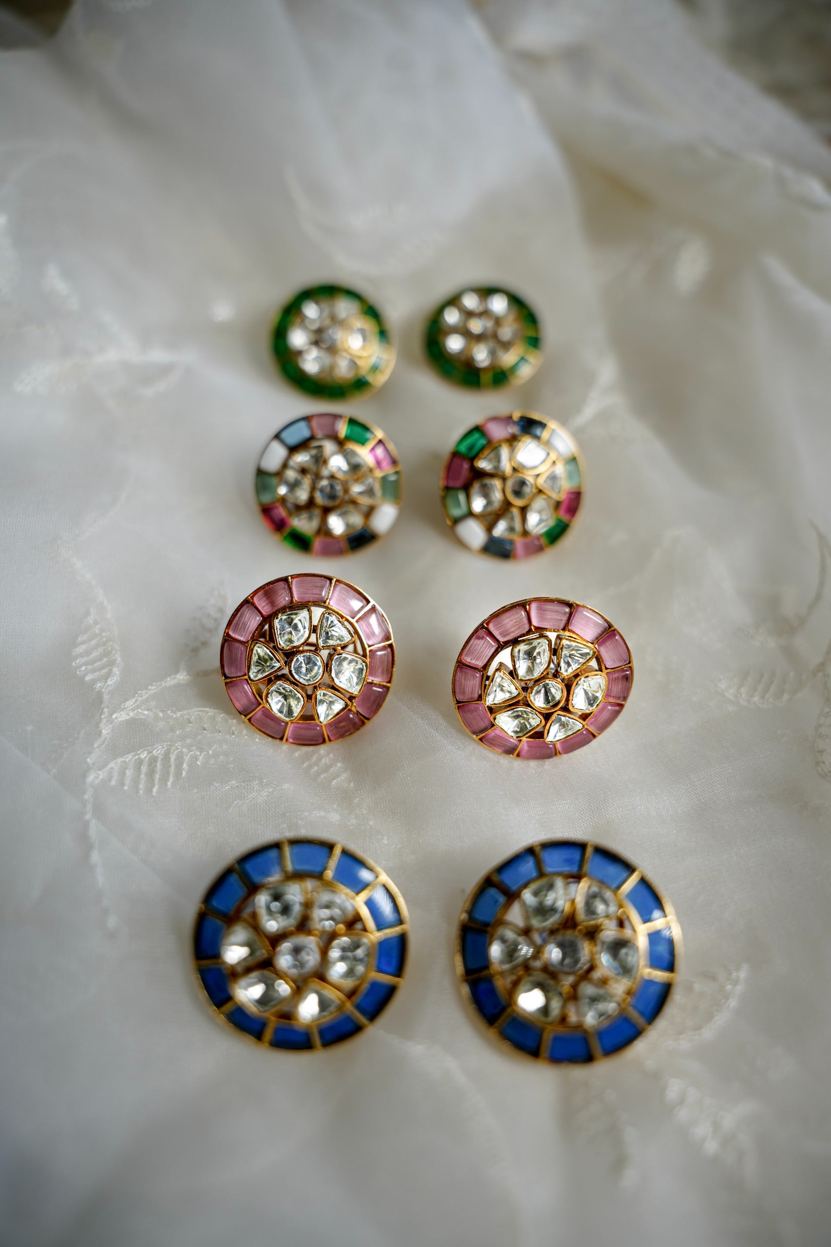 An everyday celebration piece, the Noor Studs 2.0 bring back our cult-favourite design in fresh colourways. Featuring a circular enamel border and central kundan cluster, these lightweight studs come in jewel tones of green, blue, pink, and multi-hue — perfect for every mood and moment - Pair them with your cotton kurtas, festive saris, or even a plain white shirt for a pop of culture. Stack them with other studs if you have multiple piercings, or wear solo with a sleek bun and bold lip. Perfect for gifting, collecting, and rotating with the seasons.