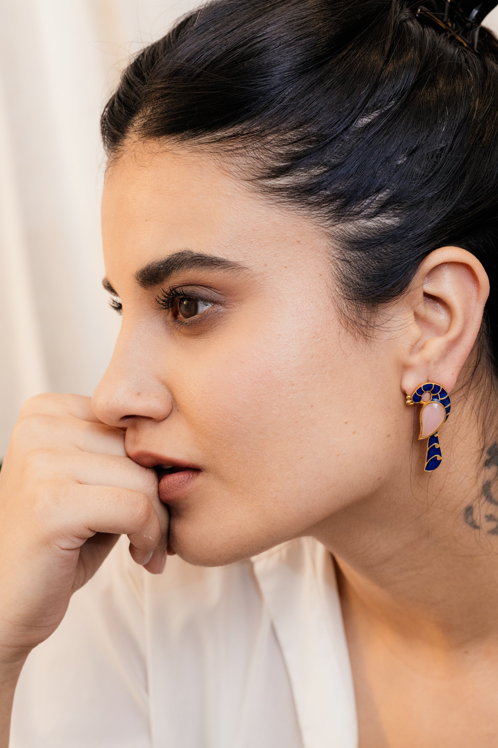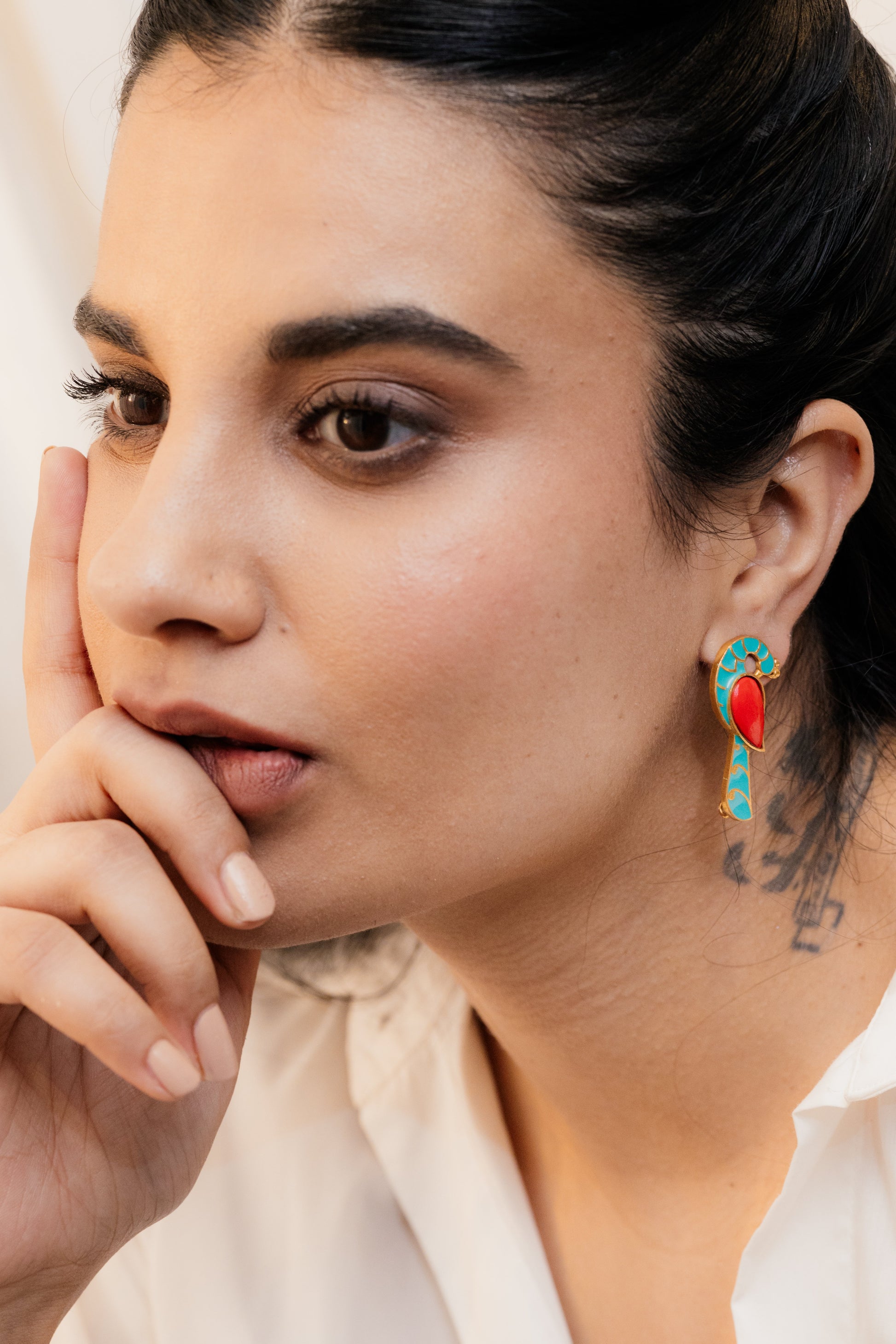 Meenakari Coloured stones shaped in a peacock form on gold plated brass base.