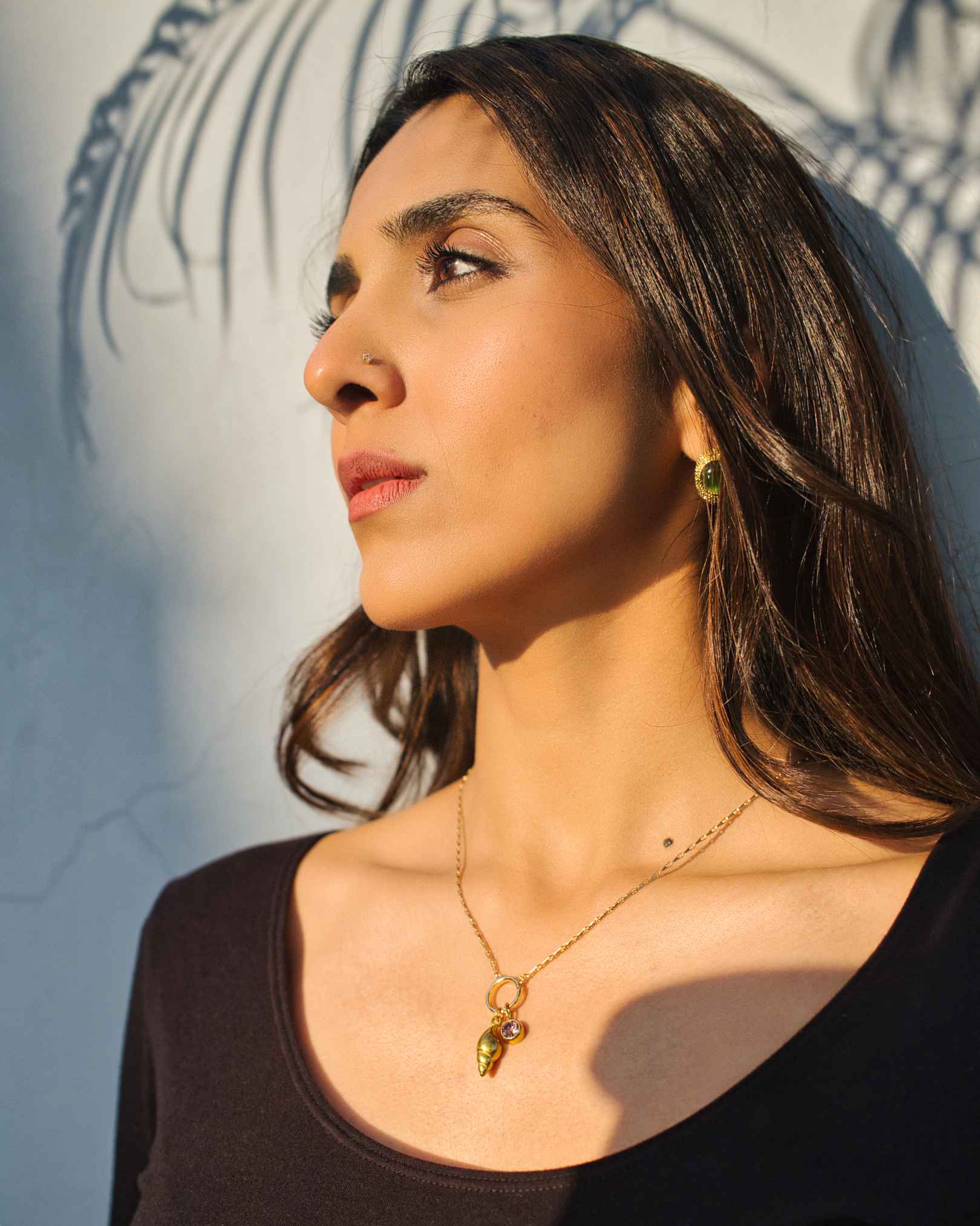Vintage Gold shell & stone charm