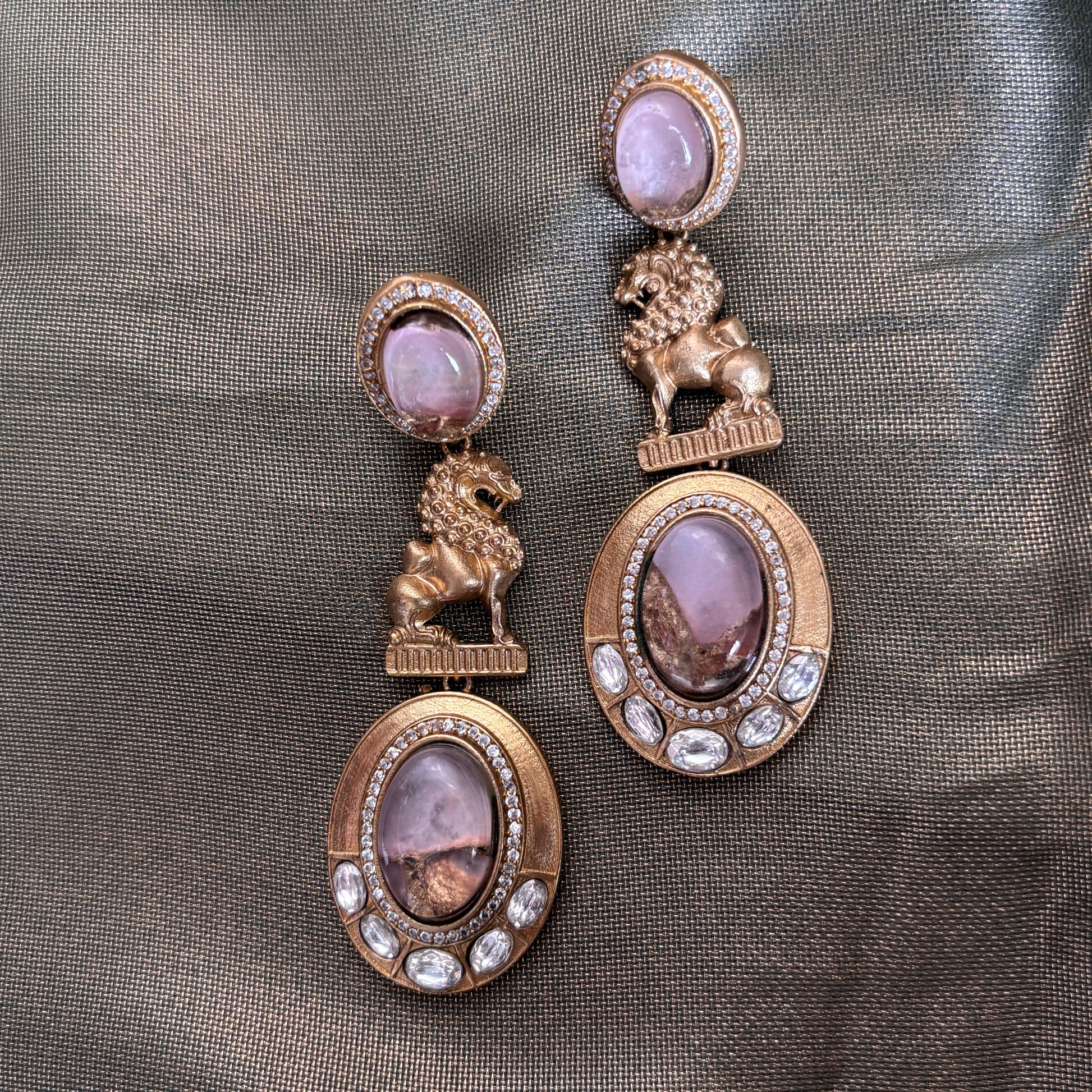 Light weighted but a solid piece, engraved with a lion motif & a vintage stone, long to give it length & character to your look.