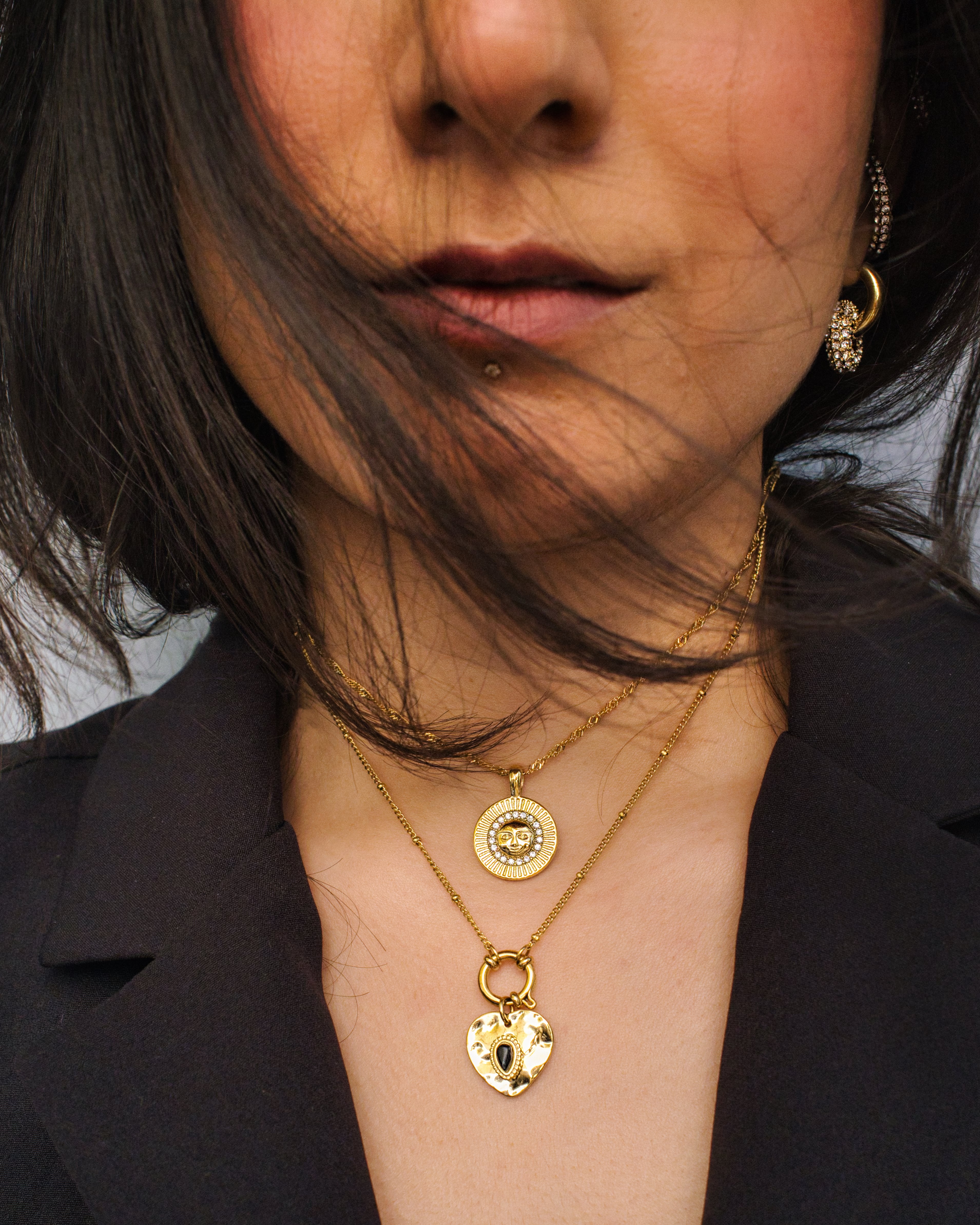 Vintage Gold Sun portrait & Heart charm chain