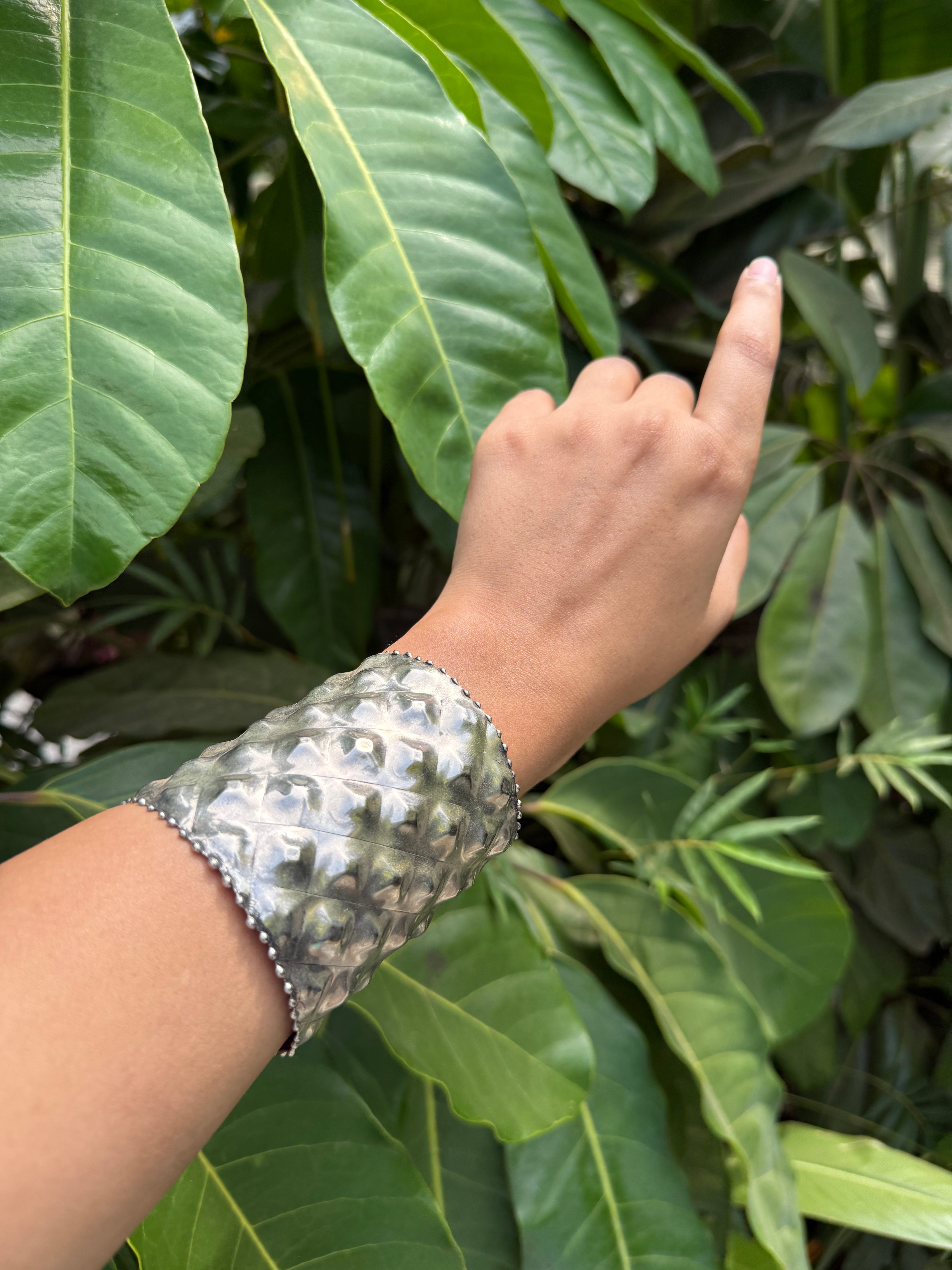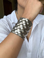 A vintage find from the streets of Europe! Textured hand done work on a silver plating. Fits like a dream.